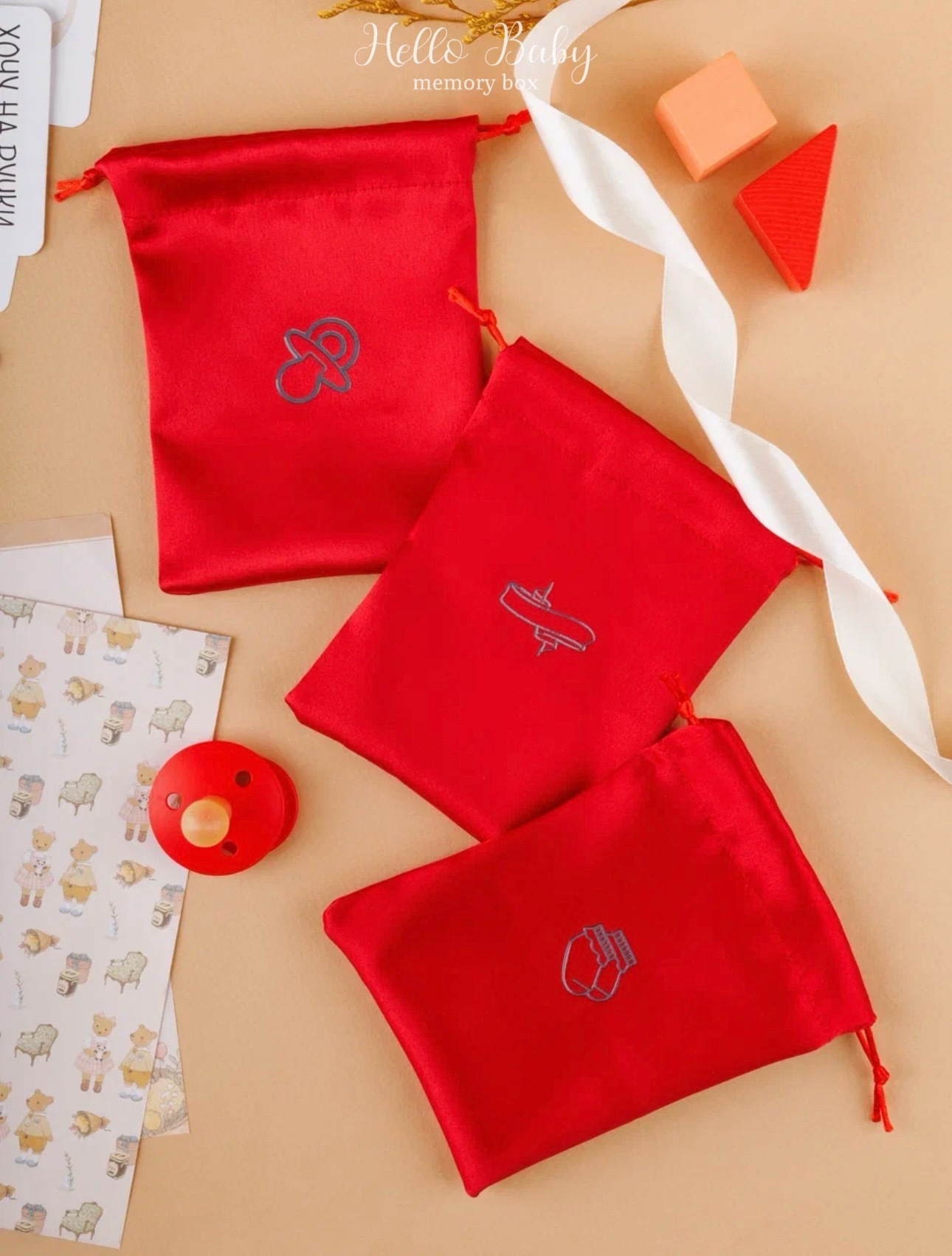 - Сатиновый мешочек лимитированной серии для первых пинеток или носочков.
