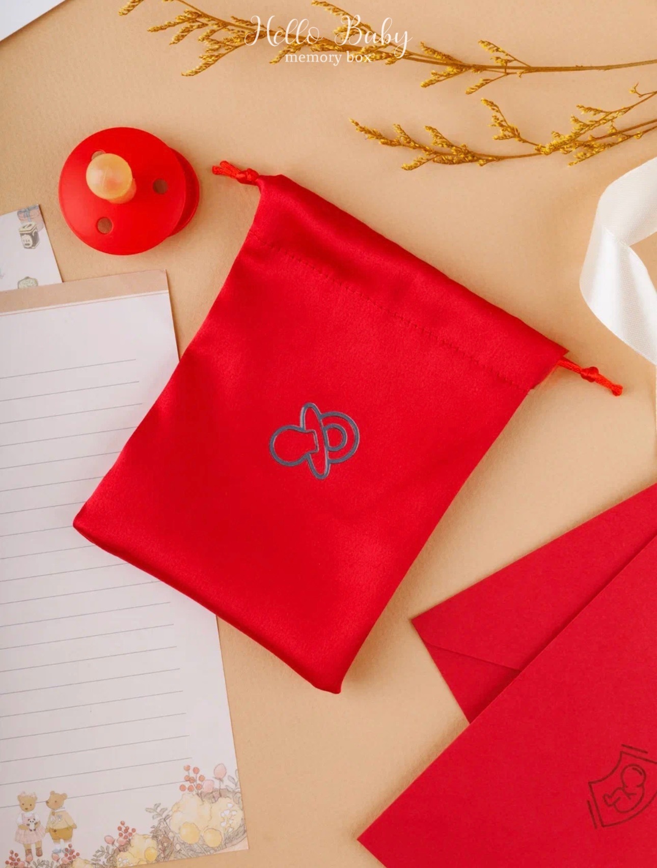 - Сатиновый мешочек лимитированной серии для ленты с выписки малыша.