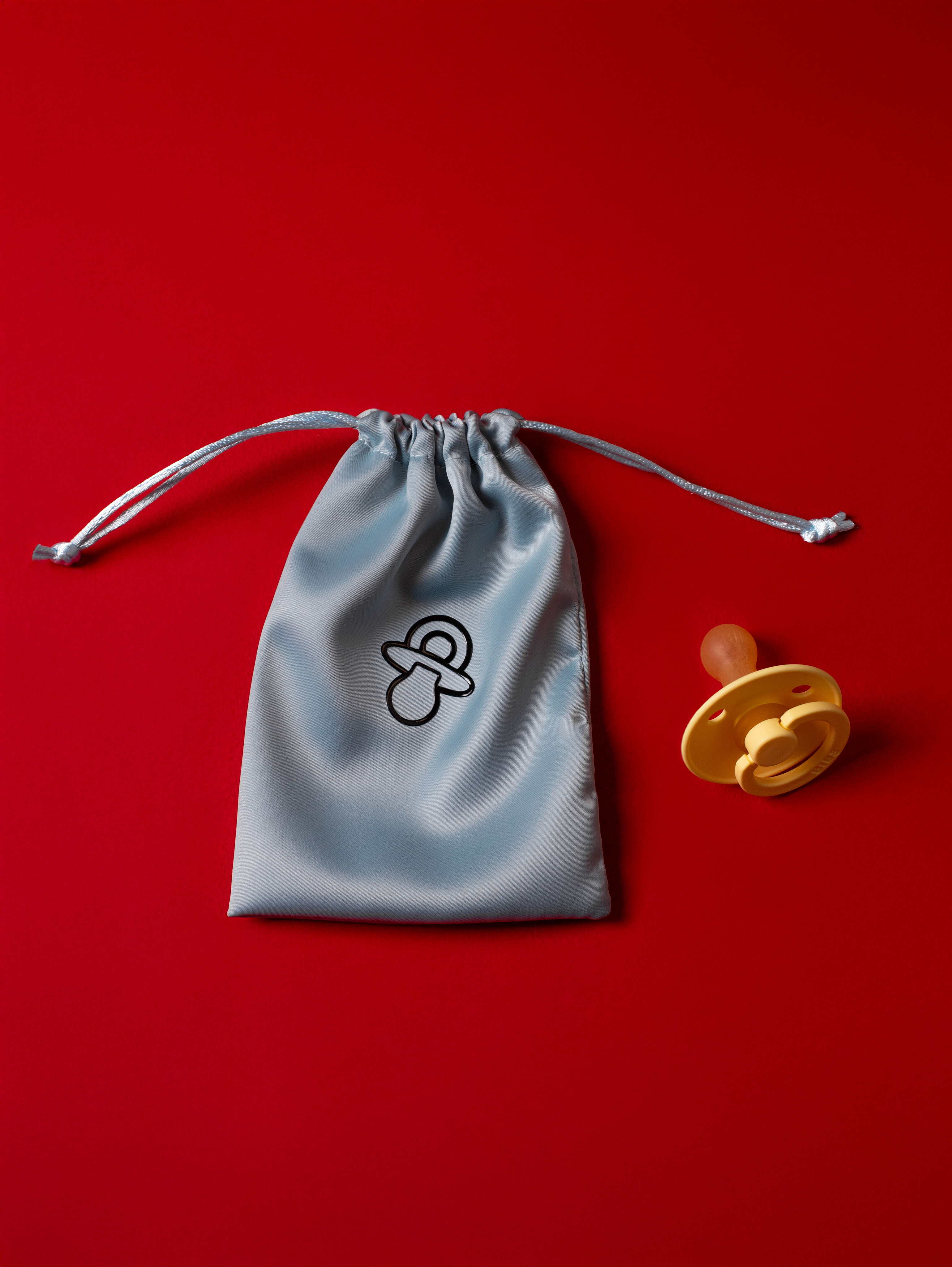 • Приятный на ощупь сатиновый мешочек для соски/пустышке.